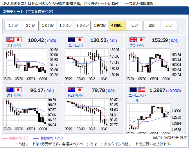23:00 (米) 5月ISM非製造業景況指数/4月製造業受注指数