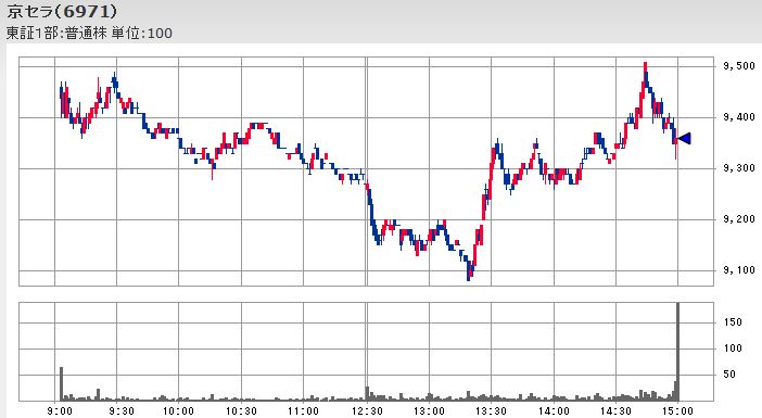 その他にも平均株価以上に下落する形で終わった銘柄でも、ホンダや京セラといった日経平均寄与度の大きな銘柄には通常では考えられない出来高の急増が大引けで見られるのだ。