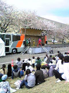 毎日DVDを見ていても、やっぱりショーがあると見たいようです。今日も子供の言いなりに足となって行ってきました。ちょうど桜も満開から風で花びらが散る中でのショーで、春ももう足早に過ぎていくのかなと感じました。