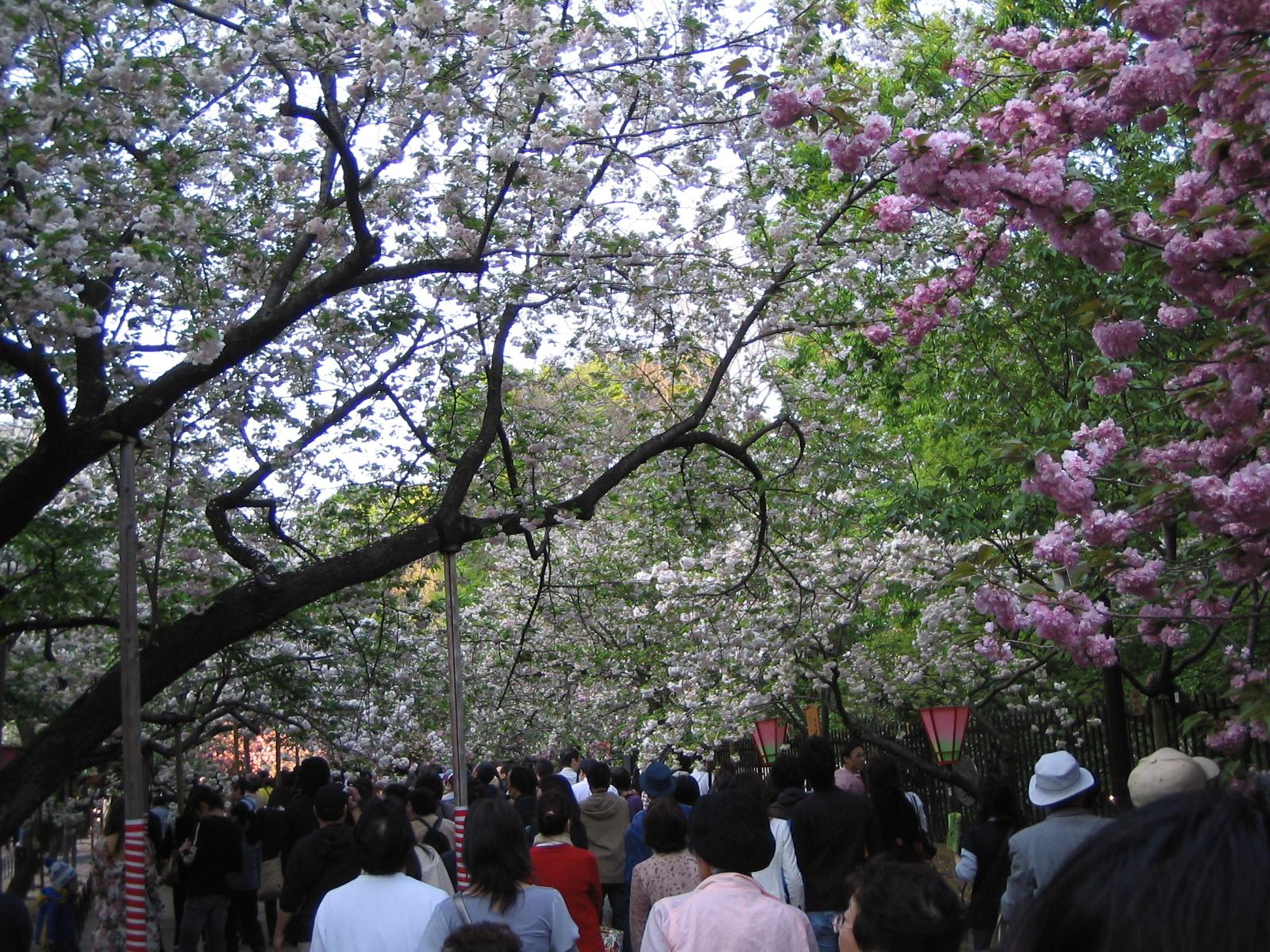 いろんな色の桜が咲き乱れていて、コントラストがとても綺麗ですね。夕陽が差し込んだ時の光の明暗も素敵でしたし。できればゆっくり観て回りたかったですが、そんなことができるのは平日昼間くらいでしょうね。また、夜のライトアップも良さそうです。あと2日あるので近くに住んでいる方はぜひ。