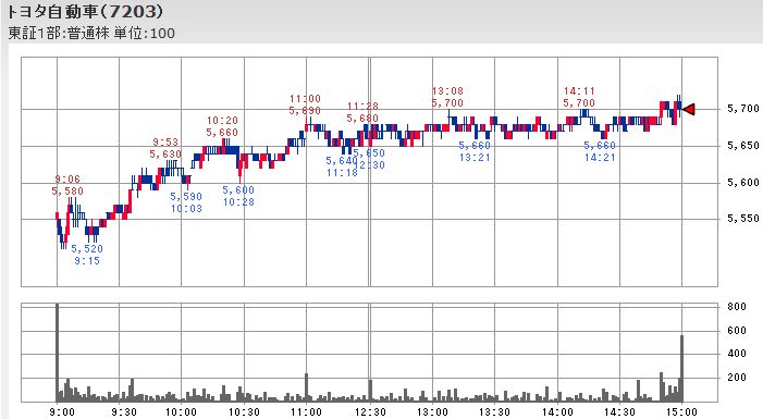 しかし、本日の終値は前日の同時間対比でやや円高に振れていたこともあり、時間帯ごとに見た場合はザラ場では極端に上昇していた時間帯は少なく、終値も前営業日の朝の寄り付き前後の高値水準であった12,900円前後と比較すると100円強の上昇に過ぎないと見ることも可能です。
