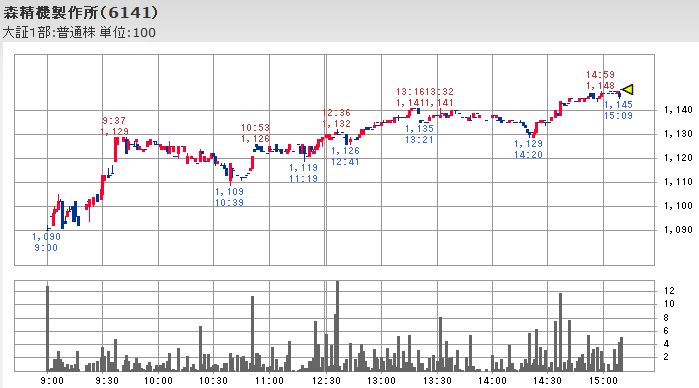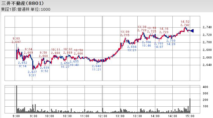 また、11:00頃の仕掛け的な買いと仕掛け的な売りが交錯した際には、V字型に反落させて売り方が買い方の買い上がりを一旦食い止めたように見えたものの、その直後の買い仕掛けで再び上昇へ転じるなど、基本的に買い方優位でザラ場の売買が進んでいます。