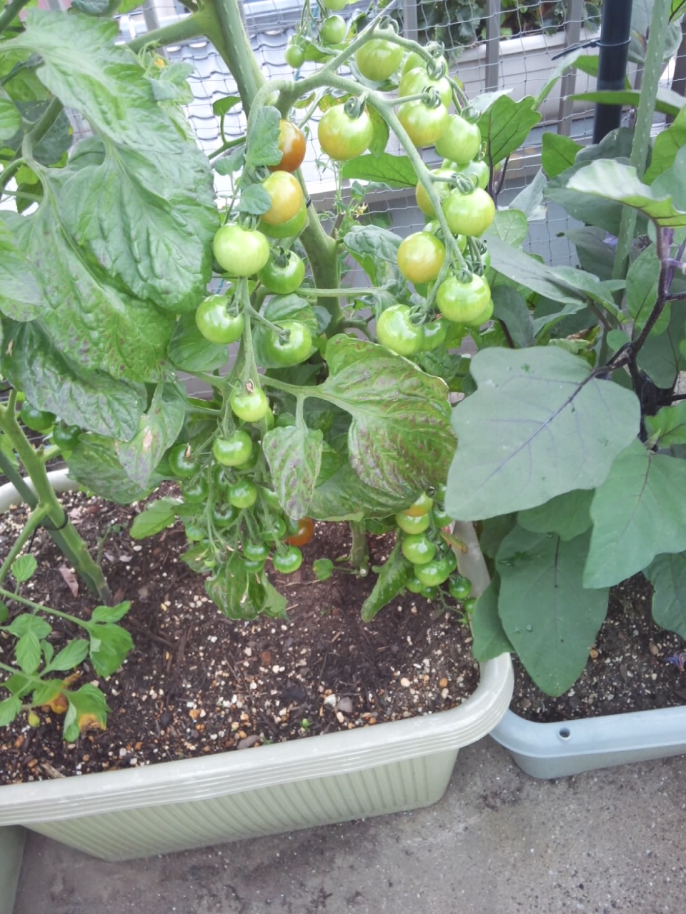 たぶん、昨年のミニトマトアイコと ハート型のトマトのミックス!!