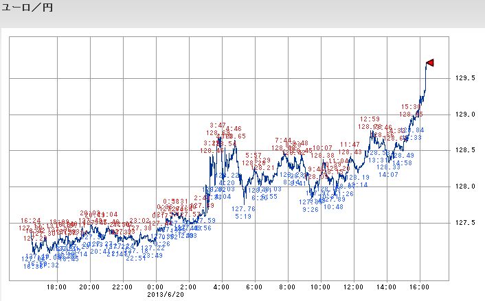 この下落もPMIの指標が予想以上に悪かった中国を中心とするアジア株の相場下落に引き摺られた結果のようで、円安ドル高の効果も空しく東京市場の株価も日経平均が230.64円(-1.74%)安の13,014.58円と大幅な反落となっています。