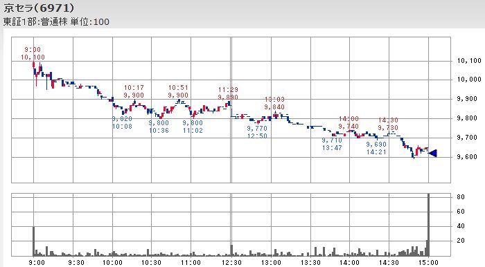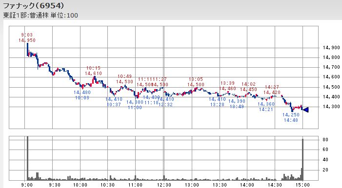 ところが、シカゴダウ平均先物が日本時間9:00(シカゴ時間19:00)頃に14,720ドルでしたが、その後じりじりと値を下げており、それに影響されたのか、日経平均先物価格も朝方の上昇の大半を早々に消す形で下落し始めました。