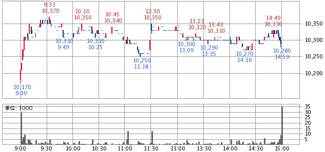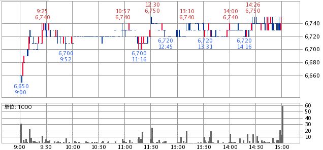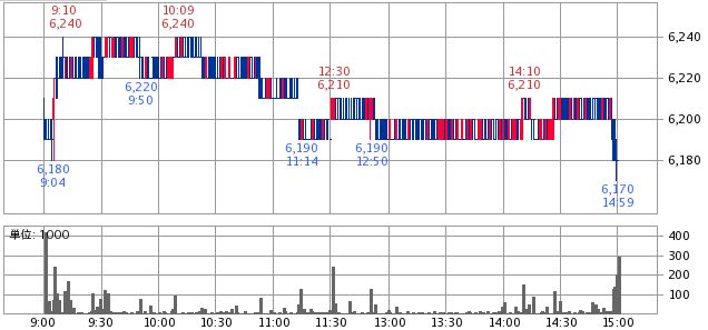 また、本日は上昇相場の調整となる反落の日と思われていたのか、大引けの出来高が朝の寄付きよりも少なくなっており極端な買い支えは行われなかったと推測されます。