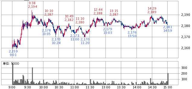 ただし、信越化学は14:50過ぎからの数分間での急落の影響はほとんど見られていない点だけが少々異なっています。