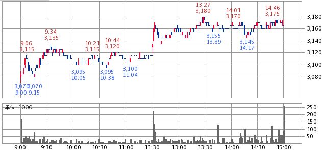 また、3社共に朝の寄り付きは安く始まり、後場の寄り付きがギャップアップして、終値が初値より上昇して終えた点こそ日経平均と同じですが、基本的に右肩上がりであった点は大きく異なっています。
