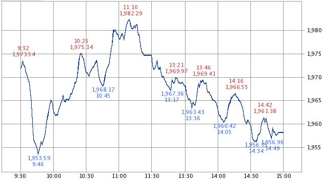 その為、前日比で見た場合には日経平均は14,309.97円から-200.63円(-1.40%)の下落、TOPIXは1,188.58円から16.00円(-1.35%)の下落と大幅下落と言っても極端な下落とはいえませんが、朝の寄り付きの初値から大引けの終値で見た場合には日経平均は9:00の14,494.41円から15:00の14,109.34円と-385.07円(-2.66%)の下落、TOPIXは9:00の1,202.44円から15:00の1,172.58円と-29.86円(-2.48%)の下落とかなり大きな下落と見ること出来ます。