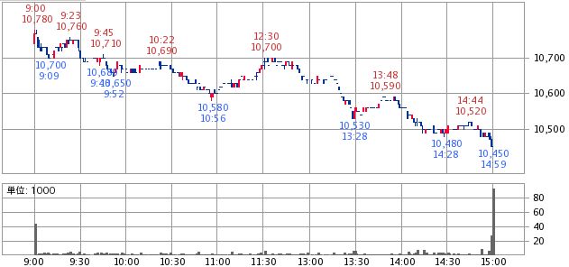 ・京セラは初値が10,780円で終値が10,450円と330円(前日比-130円)の下落