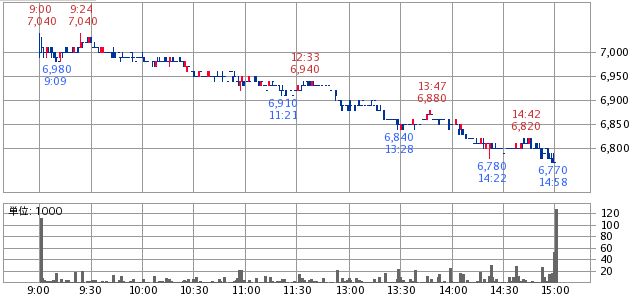・信越化学は初値が7,040円で終値が6,770円と330円(前日比-130円)の下落