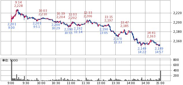 ・ソニーは初値が2,201円で終値が2,152円と49円(前日比-43円)の下落