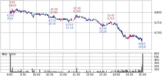 ・三井住友は初値が4,795円で終値が4,670円と125円(前日比-90円)の下落