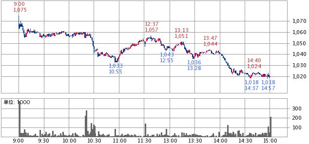 ・東急不動産は初値が1,075円で終値が1,020円と55円(前日比-30円)の下落