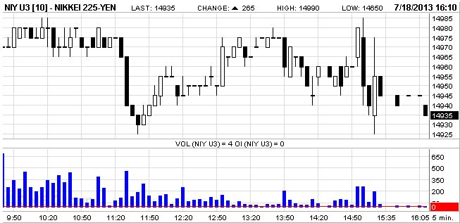 昨晩のシカゴ日経平均先物はNYダウが上昇し、終値で過去最高値を更新したため、シカゴ時間16:10(NY時間17:10、日本時間6:10)で14,920円(前日:14,670円、東証終値14,808.50円、東証終値比+111.5円)と上昇してしています。