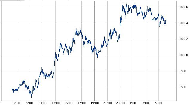 NYダウの終値の時間にはドル円が1ドル100.50円くらいと東証大引けの時間帯の1ドル100.01円くらいより約0.5円の円安ドル高のでしたが、シカゴ時間15:00(NY時間16:00、日本時間5:00)過ぎから円高ドル安となってシカゴ時間15:08(NY時間16:08、日本時間5:08)にドル円が1ドル100.33円と約0.17円ほど下落したことが、NYダウ取引終了後にシカゴ日経平均先物が少し上昇幅を縮める要因となったようです。