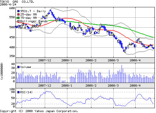 東京ガスは、資源高による値上げが効いてると思います。(^^ゞ