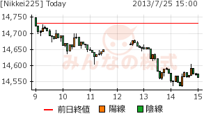 輸出の伸びに比して輸入高で、大幅赤字の第1期。貿易赤字は想定内でも、米中韓との関係からは想定以上と言わざるを得ないようだ。TPP交渉難航中と言うこともあり、先行きが明るいとは言えないらしい。で、本日の下げ。