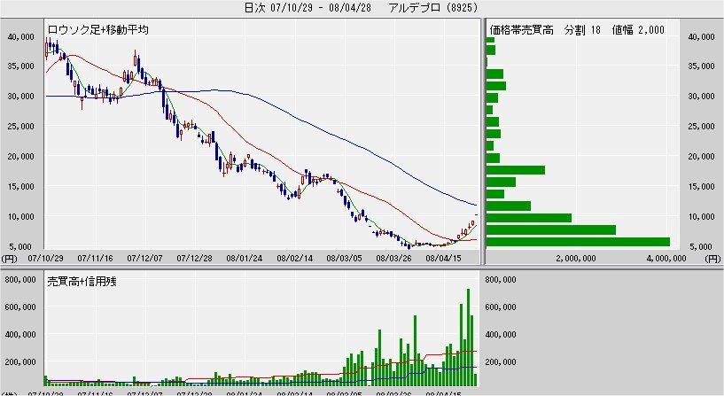 4月24日(木)一時ストップ高(8,650円)まで上昇:終値8,070円