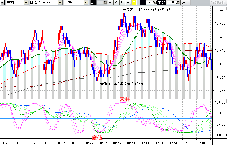 日経225mini先物チャート : 96ティック足