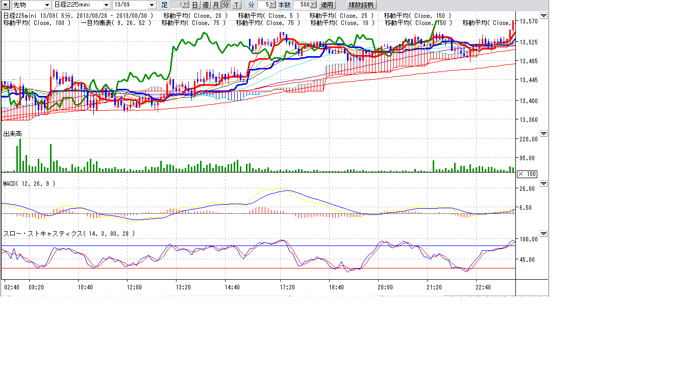上値抵抗線も13570までせまってきてるので上ブレイクに期待