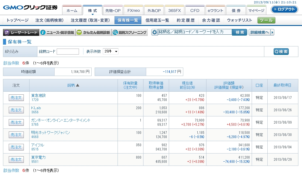 でも早速伸び悩むと言うか反落して、含み損モードになっております。ある意味予想通りの動きと言うか、ゆきママはどこまで下手なの・・・って感じですね。まぁお試しの100株なので実験的な部分もあるにはありますが・・・il||li (つω-`*)il||li
