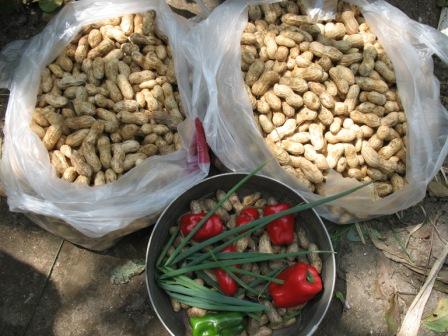台風の影響も少なく晴れていたので、落花生やナスの収穫を・・