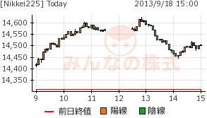 9/18 NK一時14600円、引け後に円高に