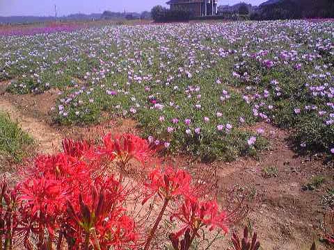 彼岸花と一緒に咲くとは珍しいですね。見事な景色。