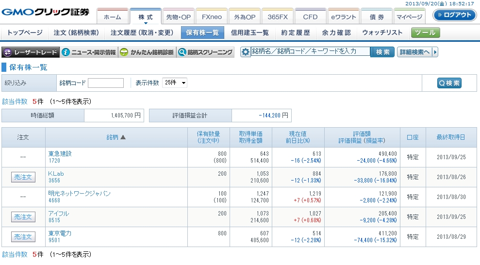 ちなみにここまでの株の確定益は手数料と税金を引いて大体+124,500円ですから、実質的には-19,700円程度。今後保有株が上がってくれば十分ペイできますが、果たしてどうなるかですね。