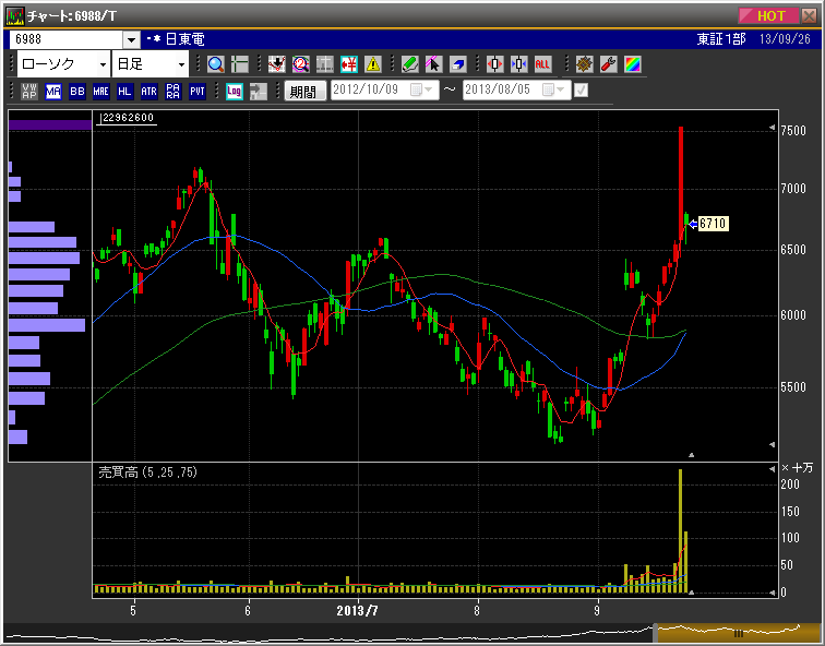 日東電工 日足チャート
