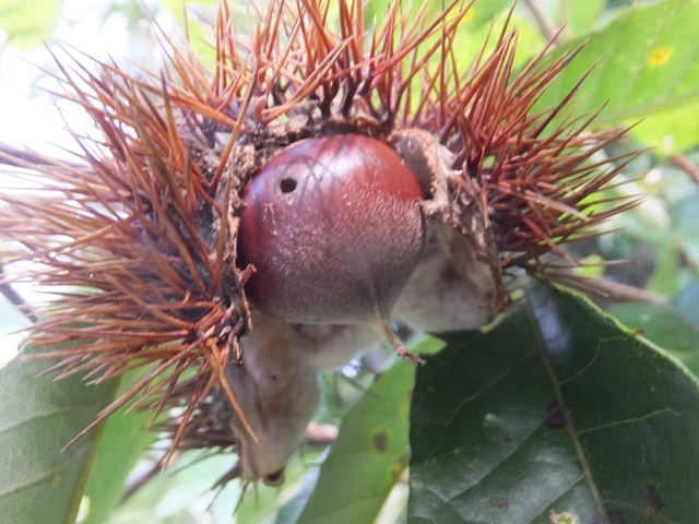 栗の実に小さな穴が開いてます