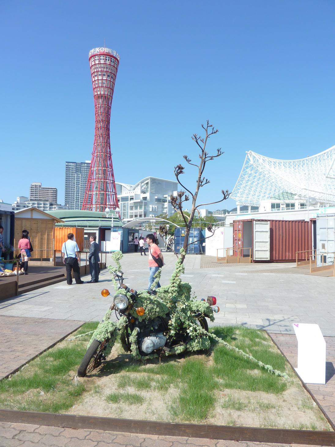 (右) いけばな野外展 小原流 (バイクは川重のものでした)