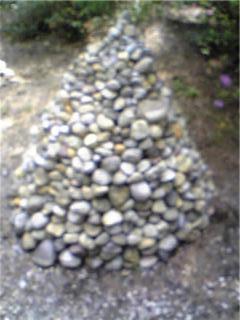 山歩きをしていると色々な虫に出会います。最近はまだヘビにあっていません。道路工事の音で逃げてしまったんでしょうか?地下鉄の駅のすぐ上の山です。夏には蛍も出るようです。誰が作ったかこんな石が積んであります。根気の要ることをやった人もいるのですね。これを見つけてうれしくなりました。ダイエットには歩くのが一番です。