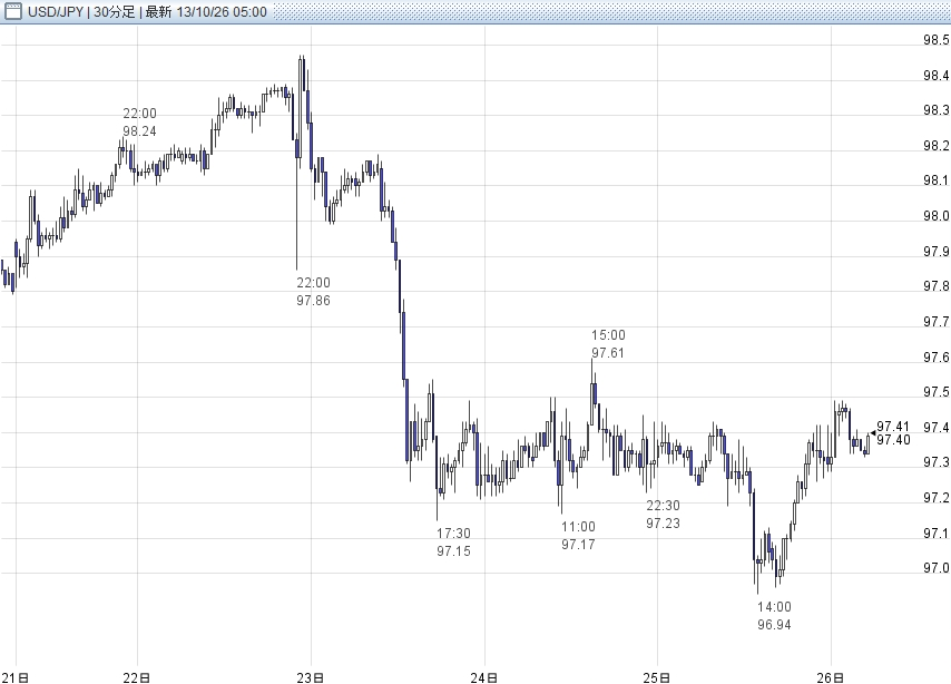 10月21日~10月25日の週。ドル円相場は1ドル=96.94~98.47円