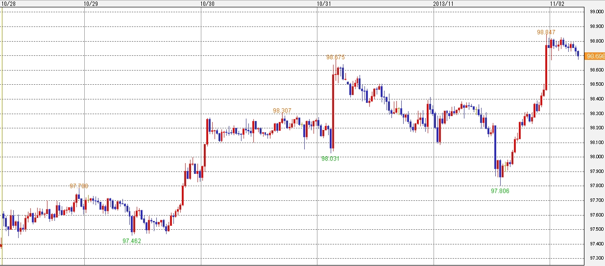 10月28日~11月1日の週。ドル円相場は1ドル=97.44~98.85円