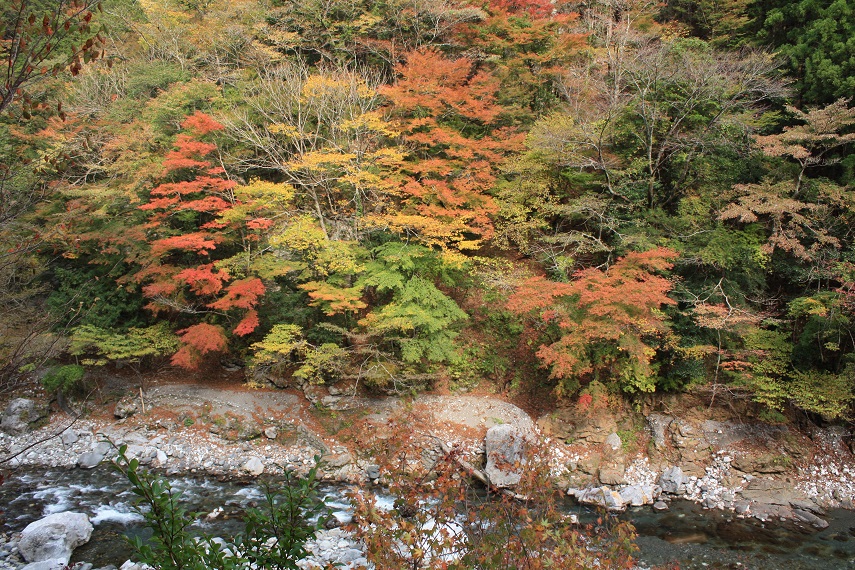 高の瀬峡(こうのせきょう)と別府峡(べふきょう)は徳島県と高知県の県境を分ける峡谷にあり、いずれも紅葉の名所として知られています。