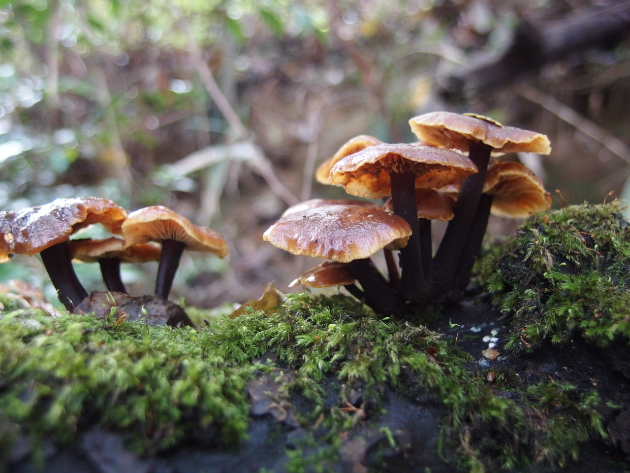 アベマキの幹にブナシメジを発見、ついでヌメリスギタケも発見し大喜び^^