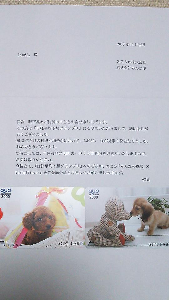 写真のとおり、10月の『日経平均予想グランプリ』の賞品が届きました。