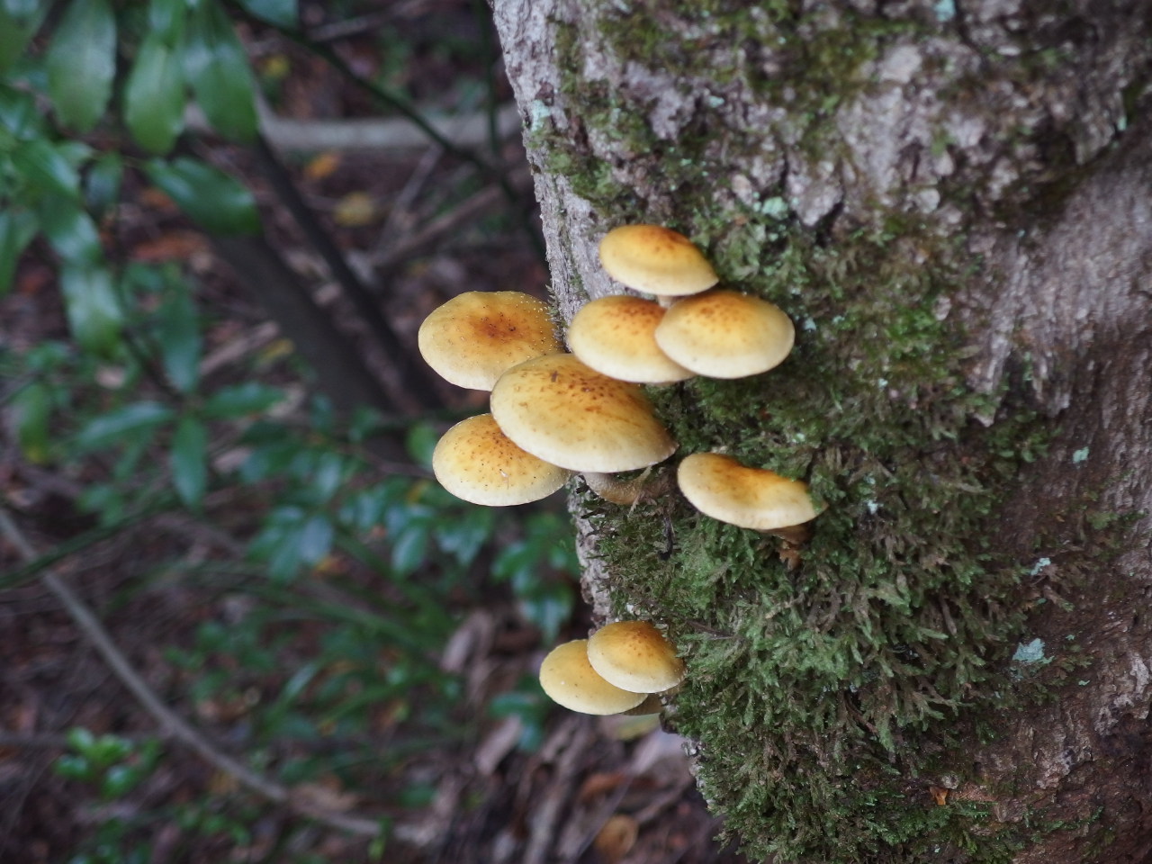 一番大きいやつを手にもって他の木の倒木にキノコのヒダを押し付けて胞子を植え付けます^^
