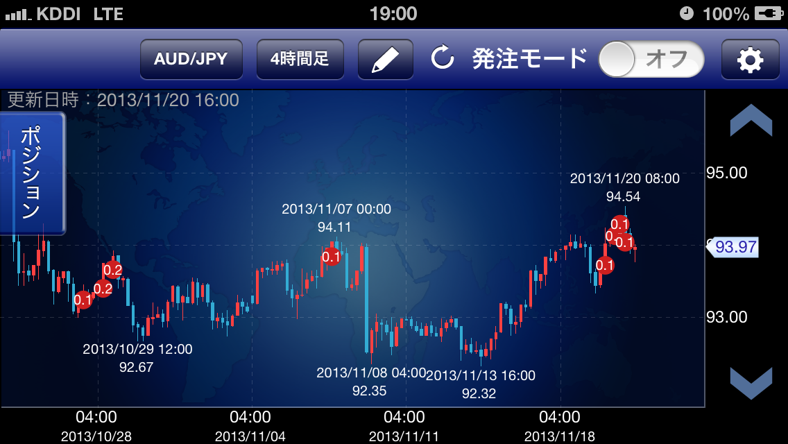 本日(2013/11/20 19時)時点で豪ドル円は94.00あたりまで戻ってきております。