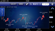 M2JのiPhoneアプリで見ると、チャートに自分が約定したポイントが表示されます。