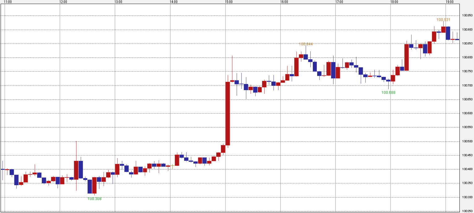 そしてここからは、昨日今日のドル・円相場について振り返っていきましょう。昨日の海外市場は、1ドル=99.70~100.20円台での値動きとなりました。欧州市場では、(日)公的年金運用改革に関する最終報告が行われ、リスク資産購入への期待やベビーファンド設立での投資の積極化などが期待されていましたが、提言は従来どおりの内容で目新しさがなかったため、失望感から下押しする動きが強く下値圏まで値を下げました。ただ底堅さもあったのでやや値を戻してNY市場へ。