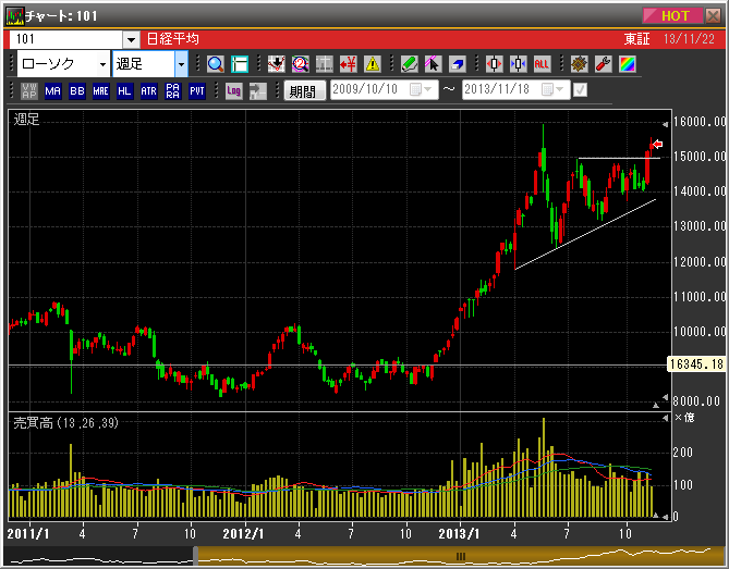後場、前場11時につけた日経平均高値15580円付近から一気にマイナス圏まで下落。