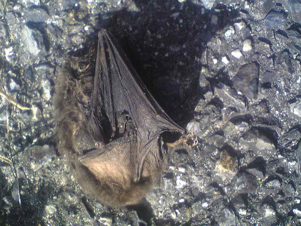 道路に転がっていました。明るいから寝てたみたい。風で木から落ちたのでしょう。