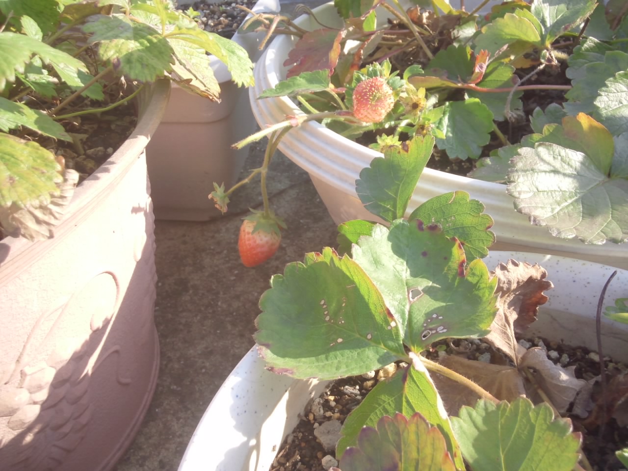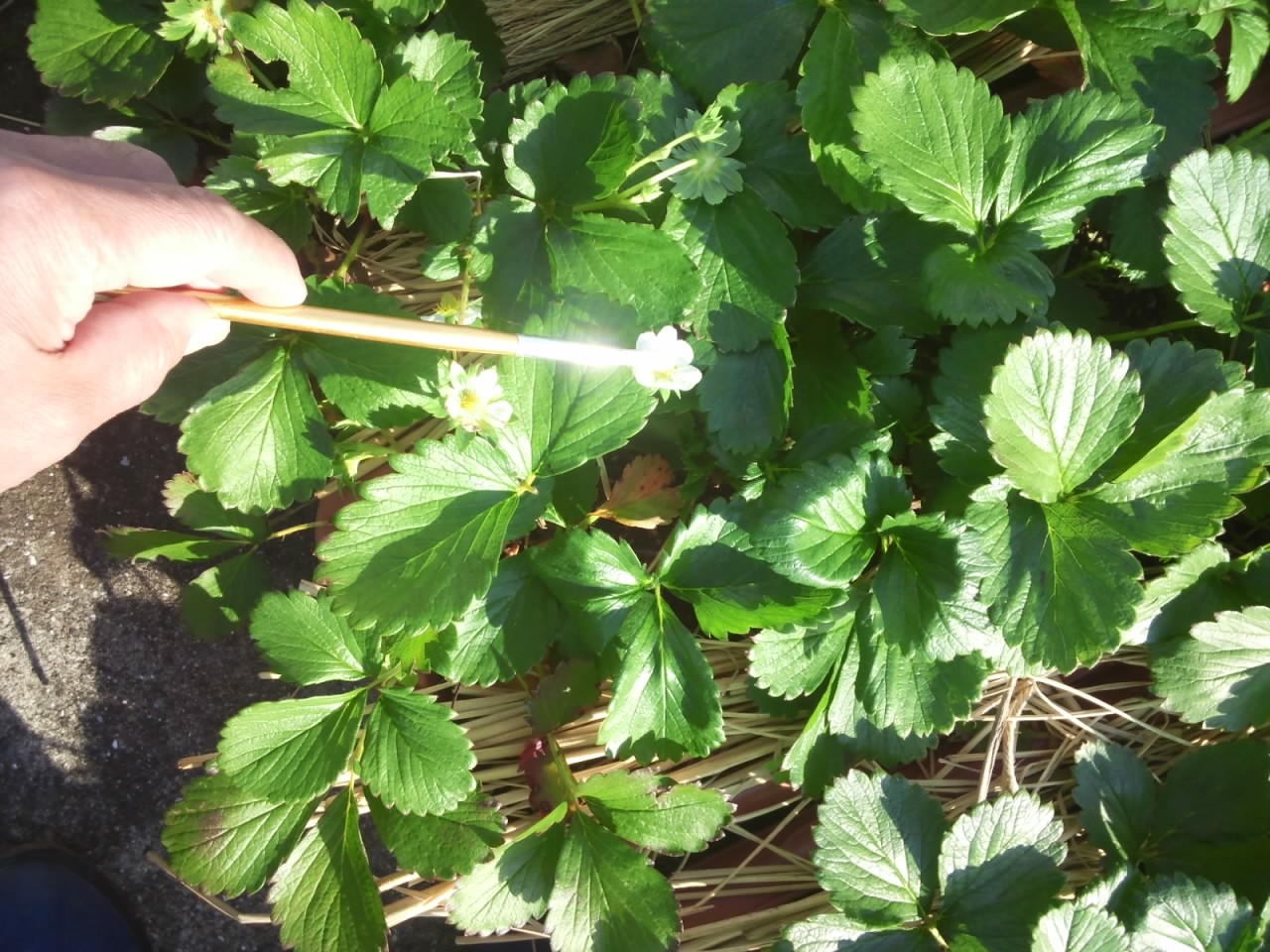 冬に備えて新しいイチゴの苗はまとめていますが 間から沢山の花芽がでてきて