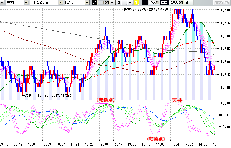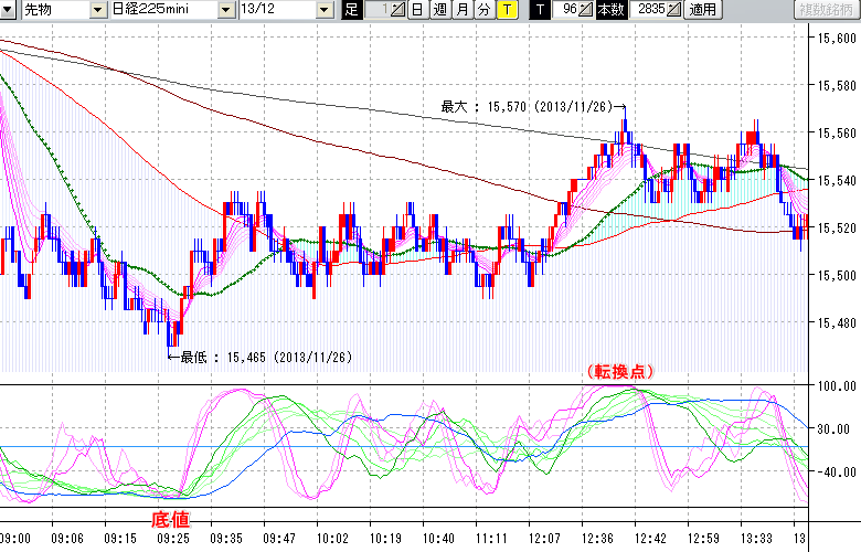 日経225mini先物チャート(下) : 96ティック足