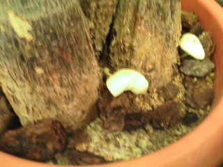 会社の観葉植物の根元に、突然キノコが生えてきました(画像参照)