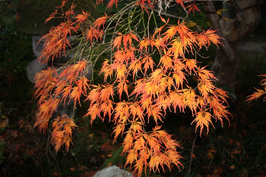 この古木の紅枝垂れモミジは樹齢数十年は経ってるんですよ。