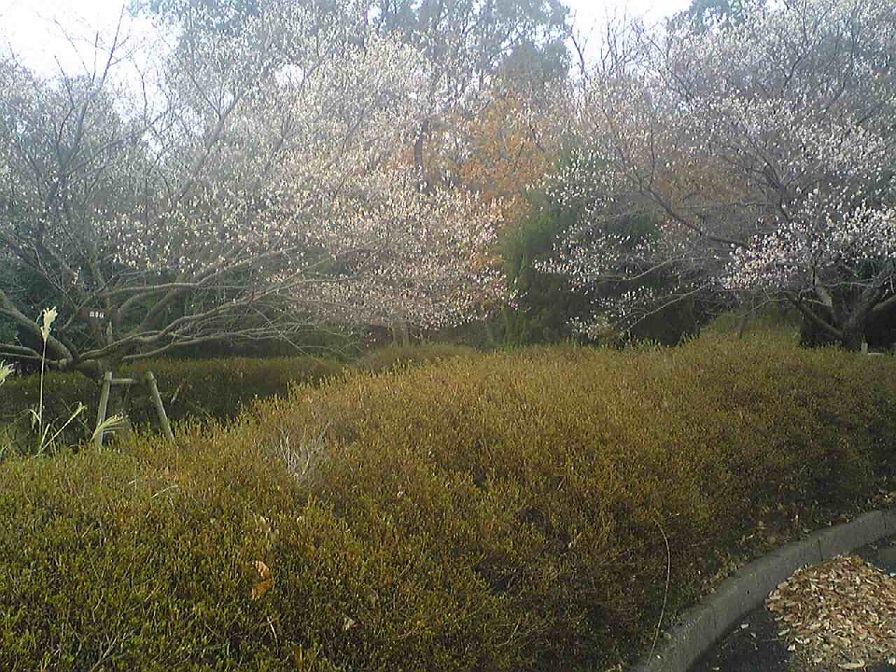 四季桜、大高緑地の梅公園のうえ 2014年01月03日 四季桜が満開。大高緑地の梅の公園の上に咲いている。